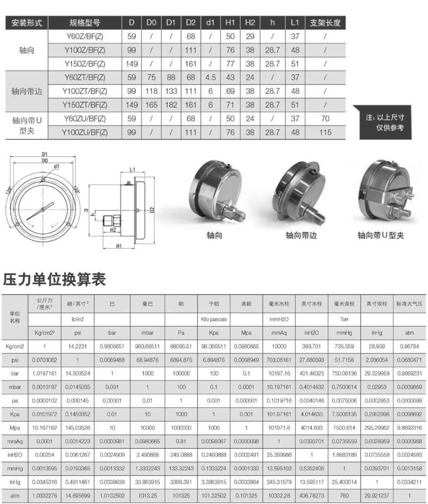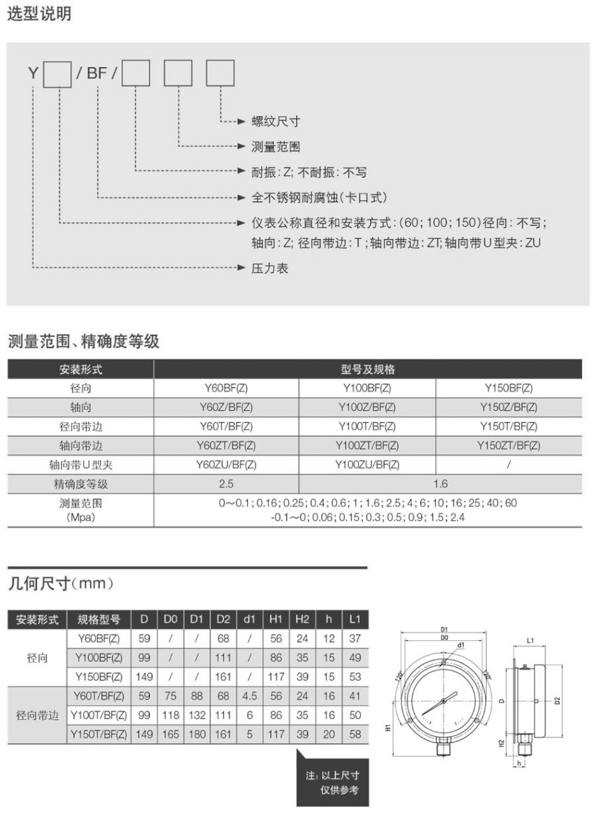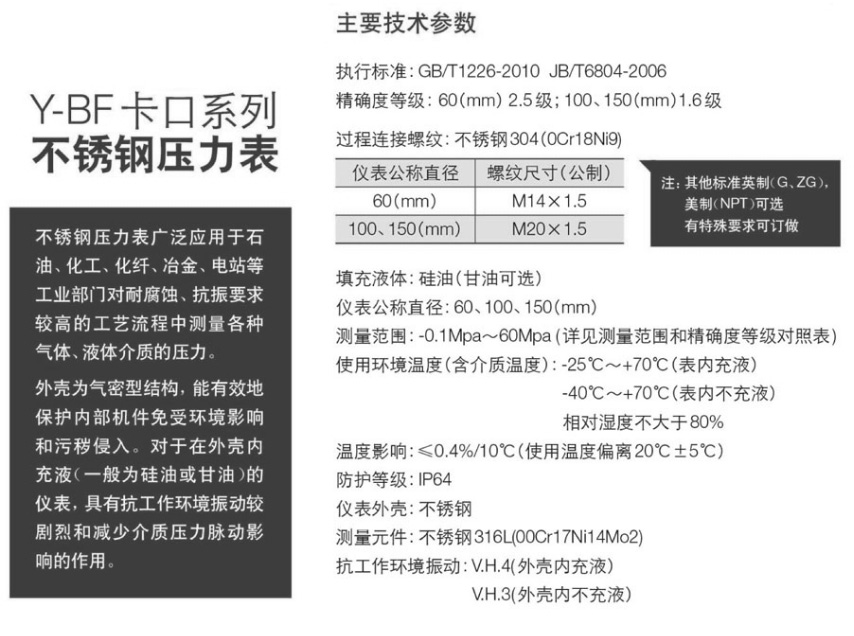 • Y-BF卡口式不銹鋼壓力表